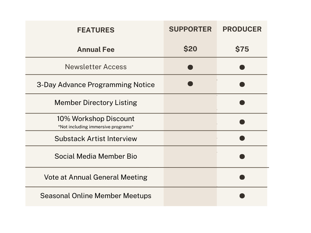 Whether you’re a seasoned artist, a curious newcomer, or someone looking to share your story, you’ll find a welcoming space here. We strive to ensure that everyone feels respected, supported, and empowered to contribute in their own authentic way. Join us in building a community where creativity, collaboration and relationship - both with each other and the natural world - flourish for all.